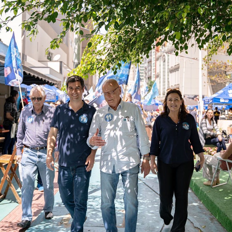 O candidato a prefeito de Balneário Camboriú, André Meirinho (PP), caminhou na manhã deste sábado (5) ao lado do senador Esperidião Amin, da candidata a vice-prefeita Eliane Colla, candidatos a vereadores do time 11 e apoiadores na Feira da Cultura, localizada na Praça da Bíblia.